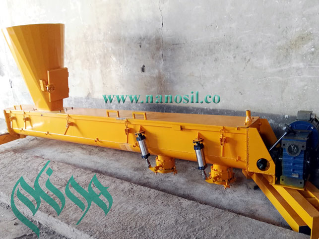 اسکرو U انتقال مواد، قالبگیری سنگ مصنوعی بهمراه 3 دریچه، کنترل دور دیجیتال، اینورتر 10 اسب، موتور 7.5 اسب 900 دور، گیربکس هالوشافت 150؛