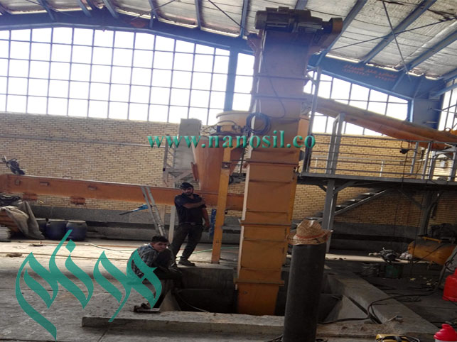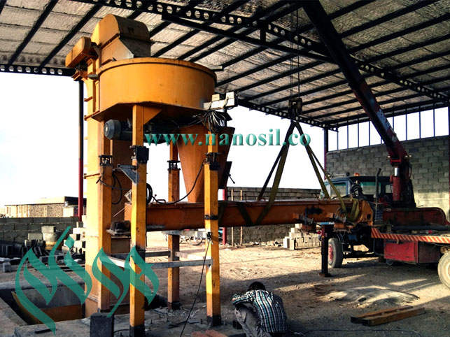 تزریق و قالب گیری مخلوط ساخته شده به درون قالبها بصورت همزمان توسط دو-سه دریچه پنوماتیکی تعبیه شده در خط تولید اتوماتیک با تنظیم دور سرعت بارگیری توسط اینورتر.